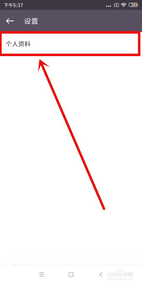 进入到设置这个页面中之后,在该页面中我们找到小我资料这个选项,点击进入。