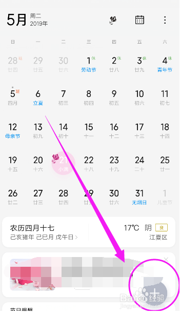 进入小米日历页面,点击右下角有个加号的图标,如图所示