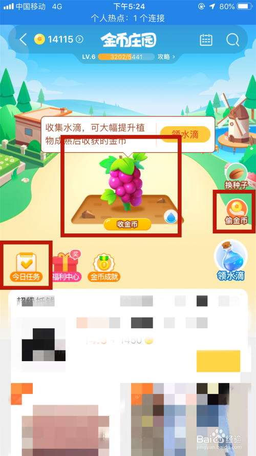 这是“偷金币”页面,可以经由过程偷老友金币,或者是给老友浇水来获取淘金币