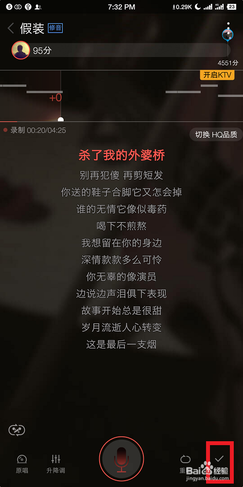确认完毕后,我们点击开k歌,进行演唱。