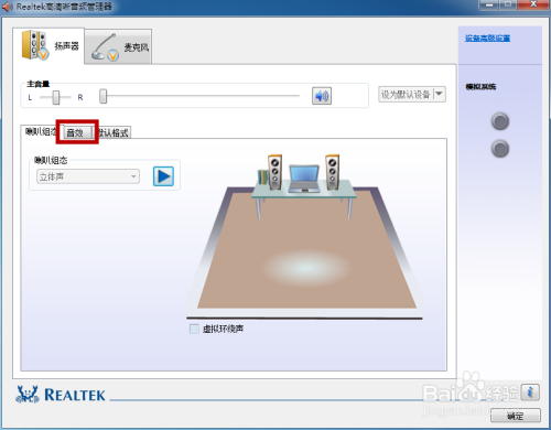 然后在【Realtek高清音频办理器】的设置里点击【音效】,如图所示。
