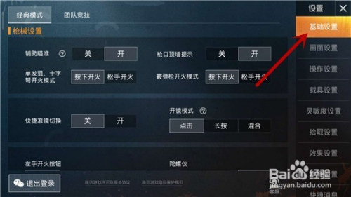 然后在游戏的设置界面中点击左侧的【根本设置】,在左侧的根本设置内容中下拉界面。
