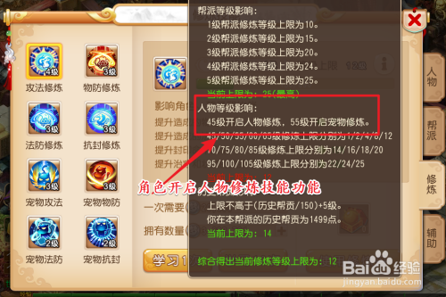 梦幻西游手游脚色修炼技术加点前提:需要游戏玩家脚色达到45级以上才能开启修炼技术功能。