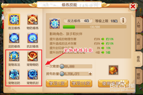 其他小常识:修炼技术除了有人物的,也有宠物的修炼技术。这里再保举宠物的修炼技术点击。若是大唐本家儿攻。那么宠物就需要选择耐抗的。且修炼技术选择点双抗修炼。反之一样。大唐本家儿耐,那么宠物就需要选择危险高的。且修炼技术选择点击本家儿功法。