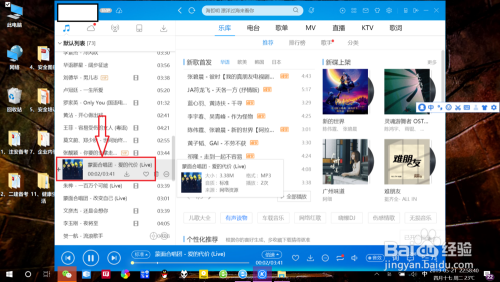 找到要进行“K歌”的歌曲,点击播放“歌曲”。