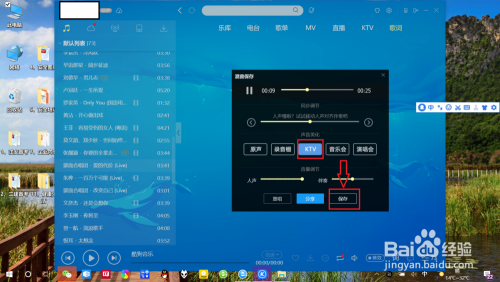 点击“完当作”,选择声音“美化体例”,点击“保留”即可对演唱的歌曲进行保留。