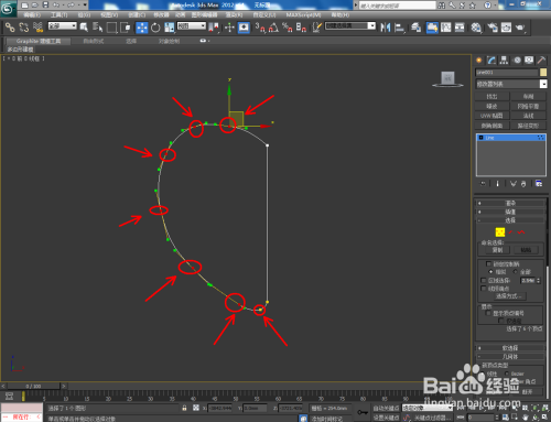 打开3Dmax2012软件,点击【建立】-【图形】-【线】,在作图区域绘制一个多变形图案。点击【点】图标,按图示选中图案上的点进行光滑圆化处置并调整好点的光滑幅度(如图所示);