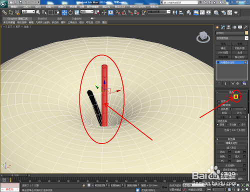 点击右边工作区中的【面】图标,按图示选中模子上的面后,点击【挤出】右边的小方框,设置好挤出的各个参数。点击【边】图标,按图示选中模子上边后,点击【毗连】右边的小方框,将毗连数目设置为:6(如图所示);