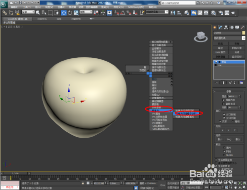 选中图案,点击【车削】,点击【最大】并将分段数设置为:30,建造出苹果模子根基体。选中模子,点击鼠标右键-【转换为】-【转换为可编纂多边形】(如图所示);