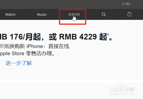 在苹果官网顶端点击【手艺撑持】,进入手艺撑持界面