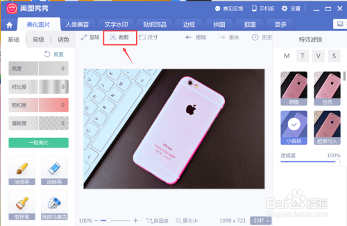 把本身找到的图片添加到本家儿页,在右侧找到本身喜好或者贴合本家儿题的滤镜,添加好后在点击左上方的裁剪进入;