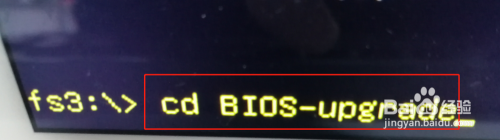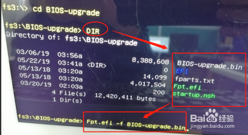 选择BIOS文件地点文件目次,输入 cd BIOS-upgrade(可以输入B再按Tab键选择)再按回车键进入下一子文件目次,若是健忘了当前文件目次下的文件名,可以输入dir按回车键查看当前目次下的文件,如图: