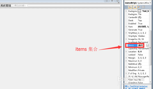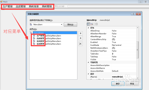 进入到调集中,我们看见整个menustrip上新建的菜单都显示在了这里。