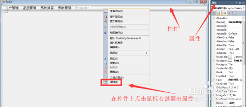 在成立好的winfrom解决方案页面中,找到menustrip控件,点击鼠标右键,在弹出的右键菜单中找到属性。