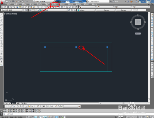 选中图示图案上的一条线段,点击【画图】-【点】-【定命等分】,在号令栏中输入:3,绘制出线段上三等分节点。点击【直线东西】,以绘制好的节点为肇端点,按图示绘制两条线段(如图所示);