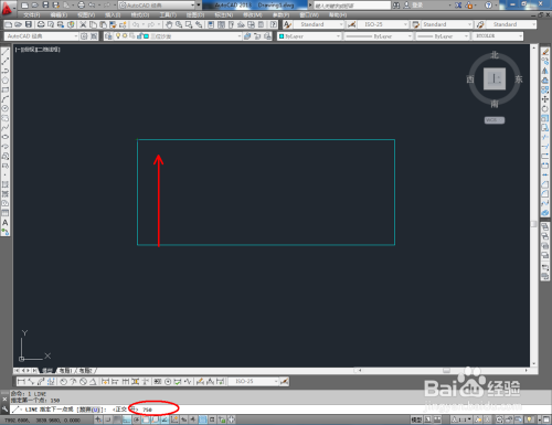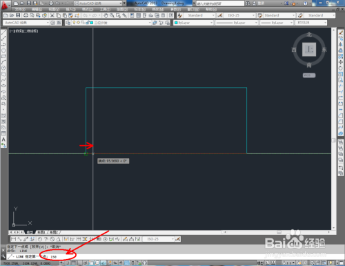 点击【直线东西】,从距离端点150mm的位置起头,按图示在号令栏中依次输入数值,绘制矩形图案内部的三条直线(如图所示);