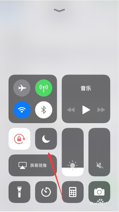 我们也可以直接标的目的上滑动屏幕,点击快捷设置中的“月亮”按钮,也可以使手机进入勿扰模式,如图所示。