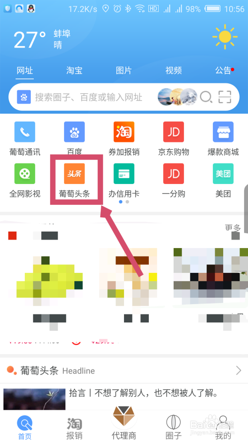 在首页界面,点击上面的葡萄头条选项,如图所示。