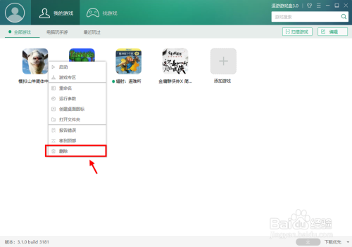 那么逗游游戏盒怎么删游戏呢?第一种方式找到需要卸载的游戏,右击选择“删除”,具体操作如下图所示。