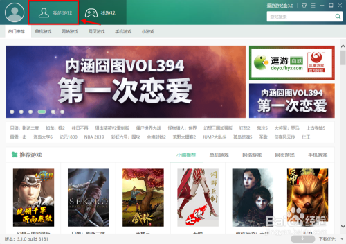 双击电脑桌面上的逗游游戏盒,然后点击“我的游戏”,查看已下载的游戏列表。
