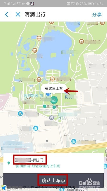 接着确认上车点,就是你站在那等的位置,如图所示。