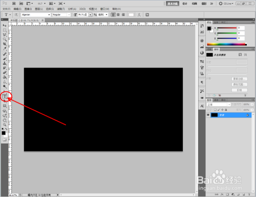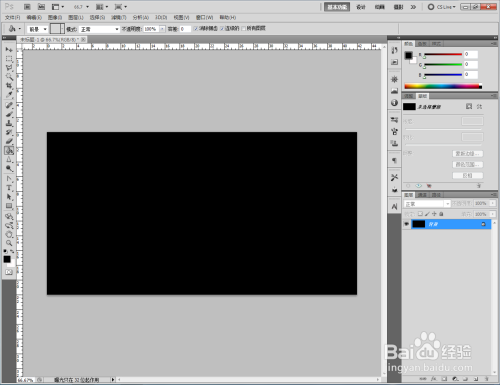 打开Photoshop CS6软件,点击【文件】-【新建】,按图示参数新建一个ps文档。将前景色设置为:黑色后,点击【油漆桶东西】将布景填充为黑色(如图所示);