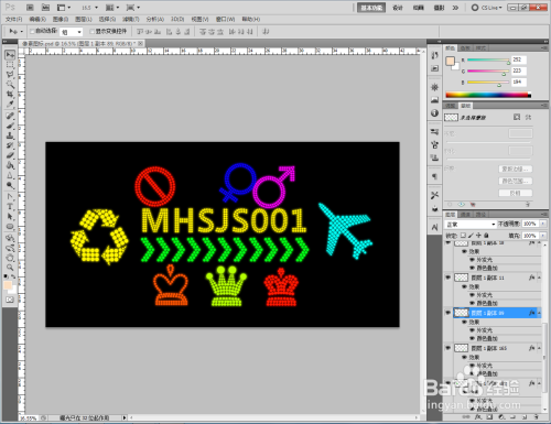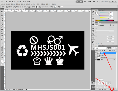 点击【文字东西】,按图示设置好文字的字体、大小和颜色后,输入文字内容:MHSJS001,建造出一个文字辅助图案。完当作后,调整好文字的位置(如图所示);