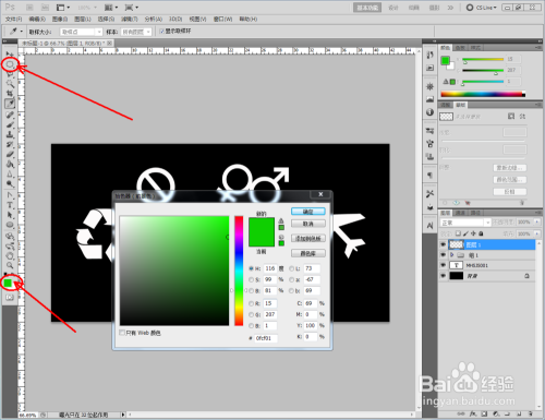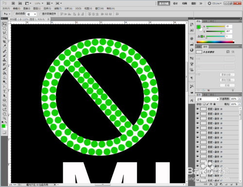 点击右下角【新建图层】图标,新建一个图层。点击【椭圆选框东西】绘制一个圆形选框后,点击【油漆桶东西】将圆形选框填充为绿色,完当作绿圆图案建造(如图所示);