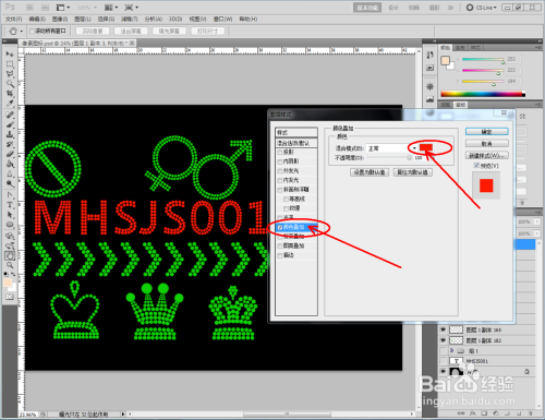 最后,鼠标双击图层空白区域,弹出图层样式设置栏,按图示设置好图层样式中的【颜色叠加】和【外发光】的各个参数,给每个像素图标添加图层样式。到这里,我们的像素图标就全数建造完当作。