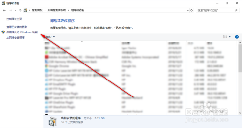 点击左侧的“启用或封闭Windows功能”;