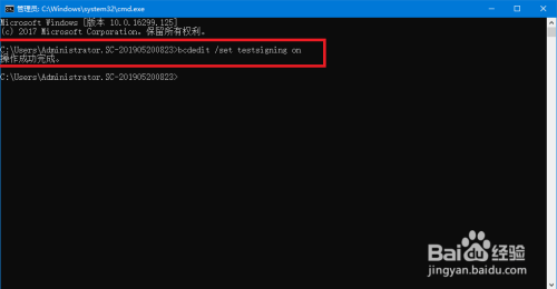 打开办理员号令提醒符对话框中输入bcdedit /set testsigning on后按键盘上回车键再可有操作当作功完当作并封闭窗口再然后从头启动电脑。