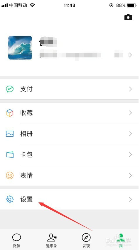 然后点击“设置”,进入微信的系统功能设置,如图所示。