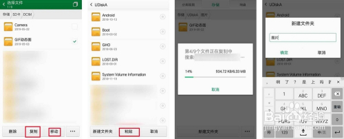 这样可以打开手机上其他存储的文件,点击该文件可以“复制”或“移动”粘贴到U盘或者新建文件夹存储起来.