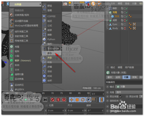 给上步的圆球添加一个对象克隆,对象为第3步获得的模子(减面后狗的模子);将分布体例更改为多边形中间。