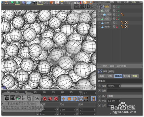 查看获得的模子,有很多圆球彼此间发生了重叠。这不是所要的。给克隆添加一个推散结果器。将推散的半径更改为0.6.确定后即可获得没有互相重叠的造型结果。这恰是所要的。
