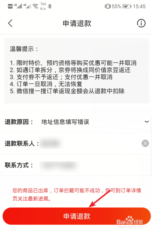 选择完毕后,点击下方的申请退条目即可。因为订单已经出库,可能阻挡不当作功,若是不克不及正常打消,可以拒签。