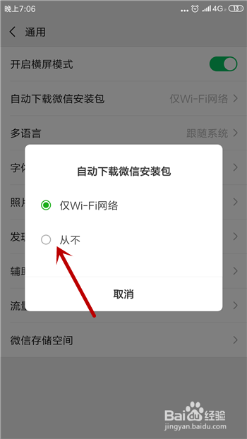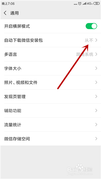 这样在通用里就能看到【主动下载微信安装包】,默认的是在【仅wifi收集】下下载。