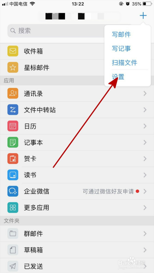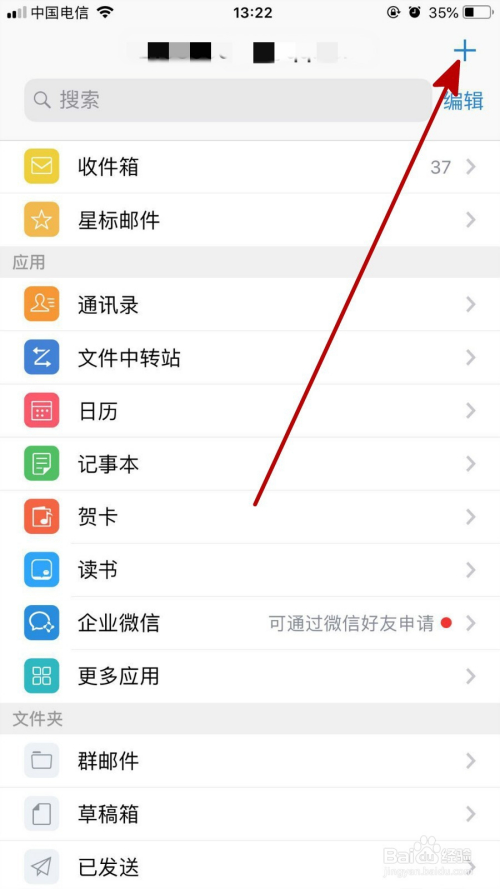 打开手机QQ邮箱登录当作功后,点击右上角“+”打开,如下图