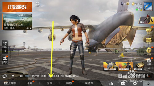 进入和平精英的本家儿界面之后,我们点击下方的仓库,进入仓库的界面。
