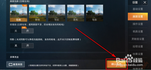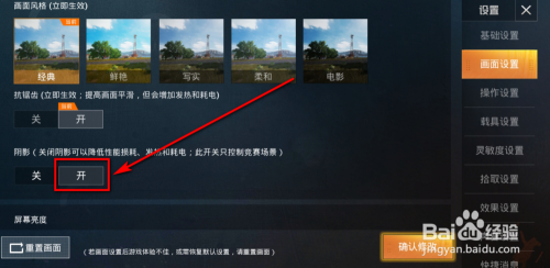 进入画面设置页面后, 标的目的下拖动页面,找到暗影设置。