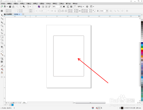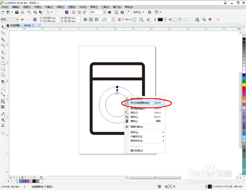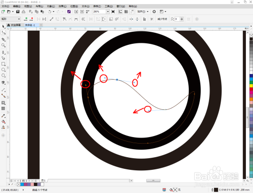 点击【卵形东西】,在作图区域绘制一个圆形图案。点击【轮廓图】对图案进行轮廓操作后,点击鼠标右键-【拆分轮廓图群组】将两个圆形图案解组。完当作后,按图示设置好两个圆形图案的轮廓宽度(如图所示);
