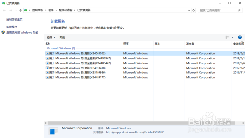 再次打开节制面板,并选择程序→程序和功能→已安装更新 以查看安装了的更新。