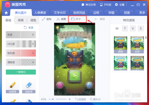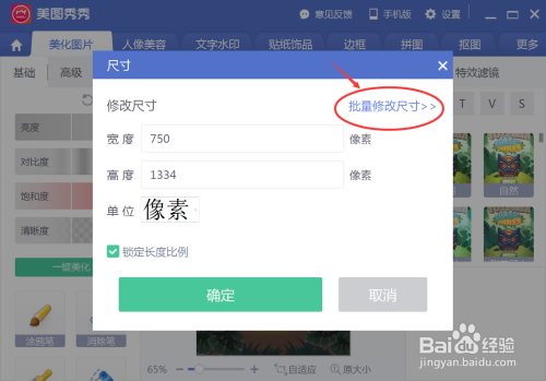 打开图片之后,找到图片上方的“尺寸”点击进入,并在弹出的尺寸框中,找到靠右边的批量点窜尺寸,点击进入;