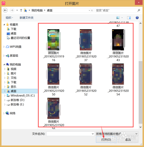 然后在桌面上找到图片,选择此中的一张并点击下面的打开;