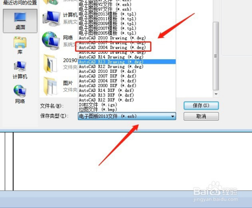 弹出的菜单中,我们选择睁开保留类型,选择一个较低版本的DWG格局