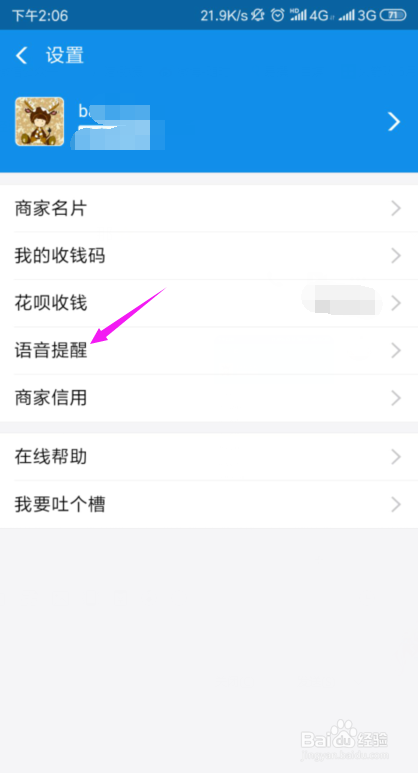 界面里,【收钱到账语音提醒】就没开启的,如图。