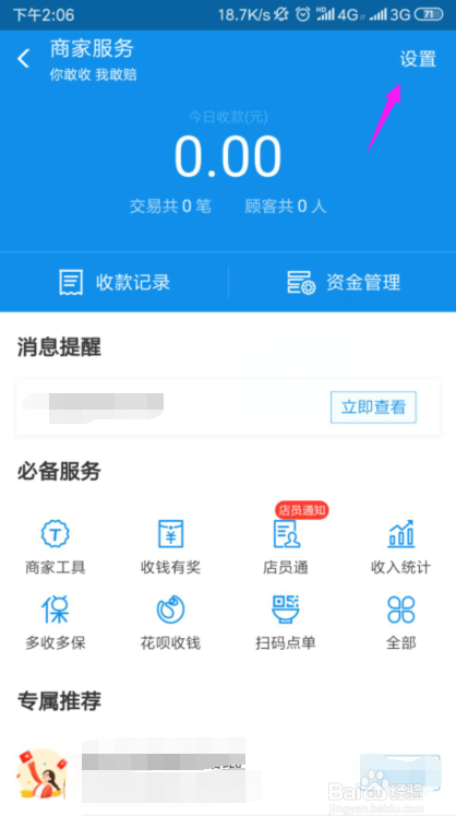 商家怎么开启收钱到账提醒,支付启开,如图。