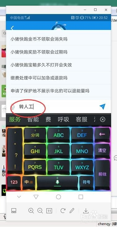 在咨询界面中,输入栏中,输入转人工
