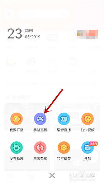 然后就会看到【手游直播】的功能,点击就可以起头建立我们本身的手游直播间。