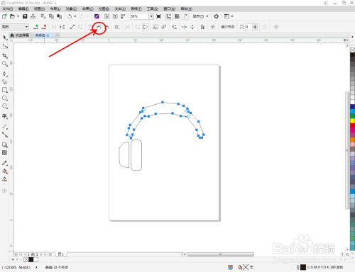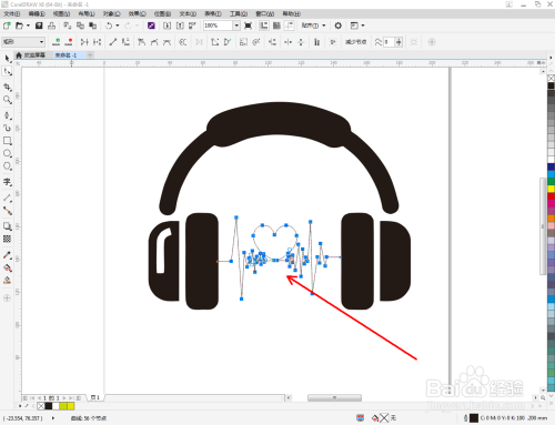 选中多边图案,点击【外形东西】,选中图案上的所有点,点击【转换为曲线】将图案转曲后,按图示调整节制点,完当作整个耳机轮廓图案的绘制(如图所示);